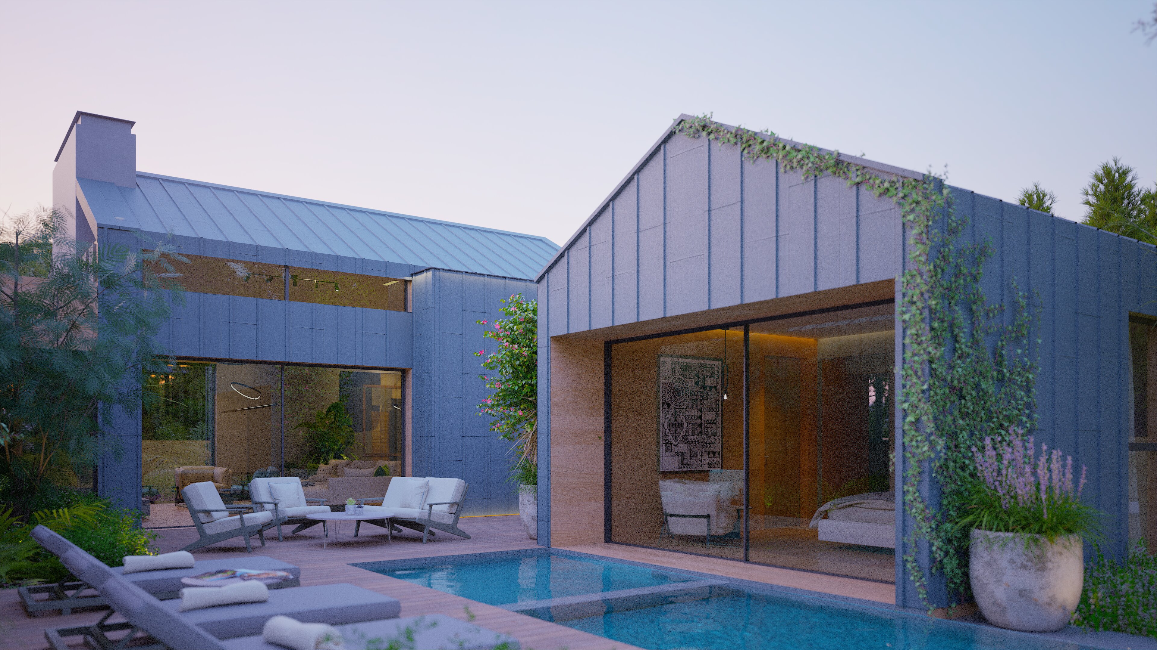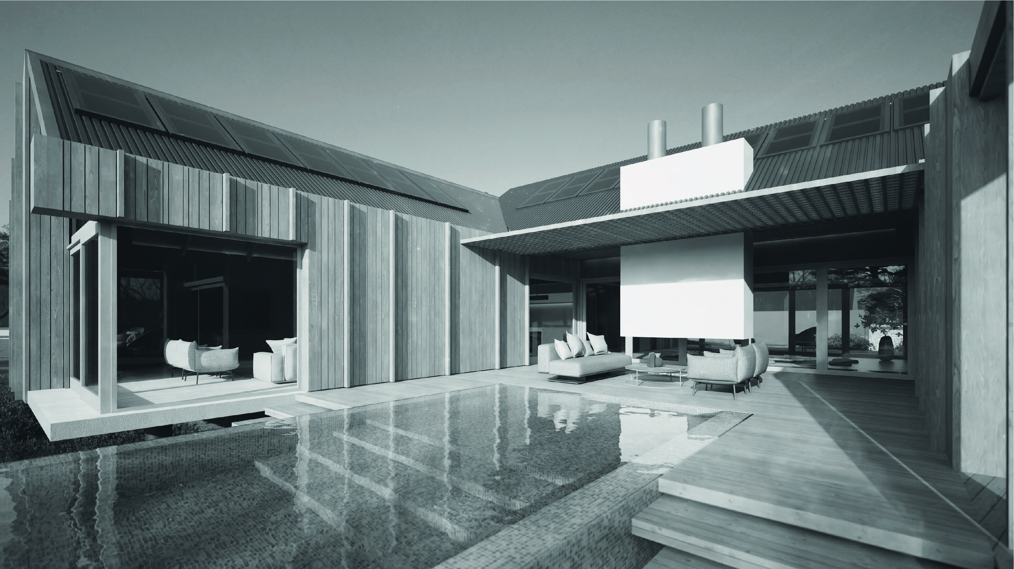 Flagship courtyard framework with modular expansions and a buildable grid logic.